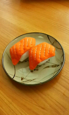 全体的に可愛らしいお寿司なので、マグロも綿を多めにして