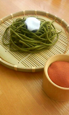 香り高い宇治の抹茶を練りこんだ蕎麦です。